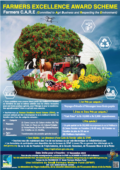 Eligible Farmers must submit their duly filled in application forms at the Small Farmers Welfare fund Head Office or at its Sub-Offices or at the Mauritius Revenue Authority.
